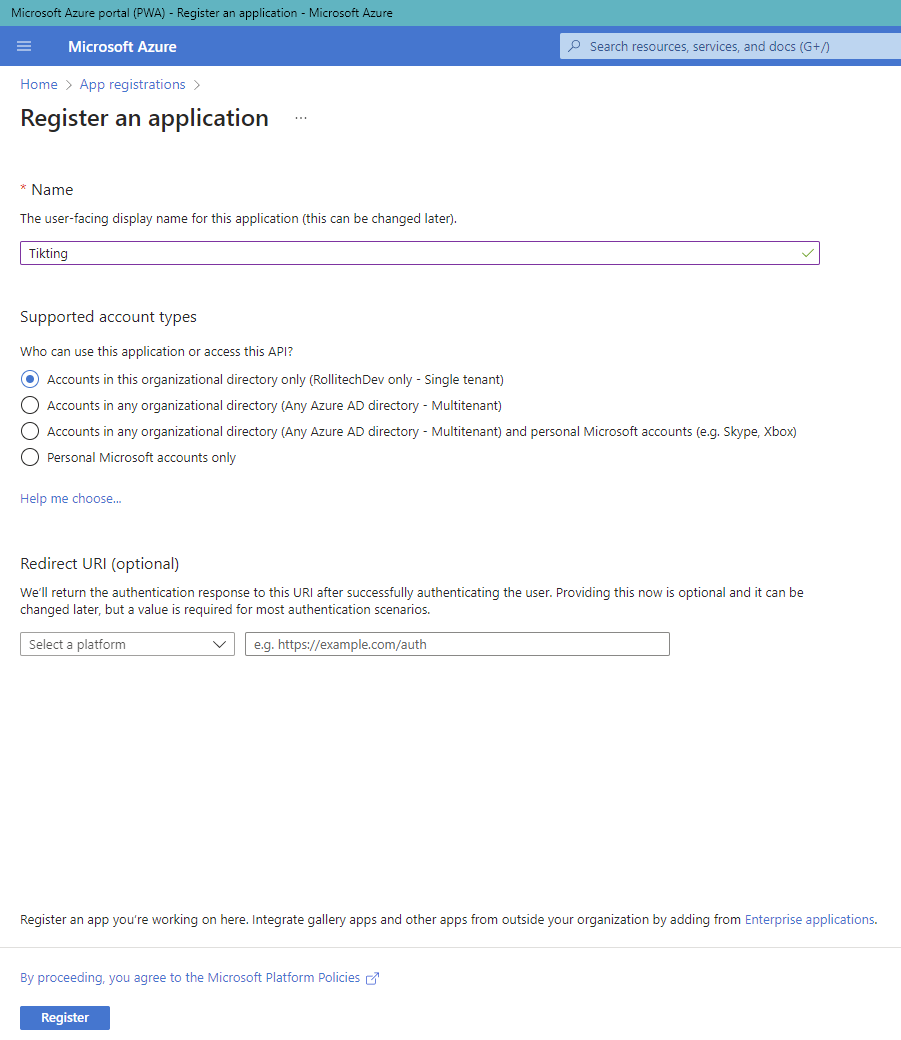TIKTING-SSO - Supported account types: Accounts in this organizational directory only