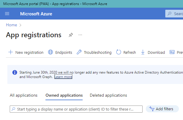 - Select App registrations