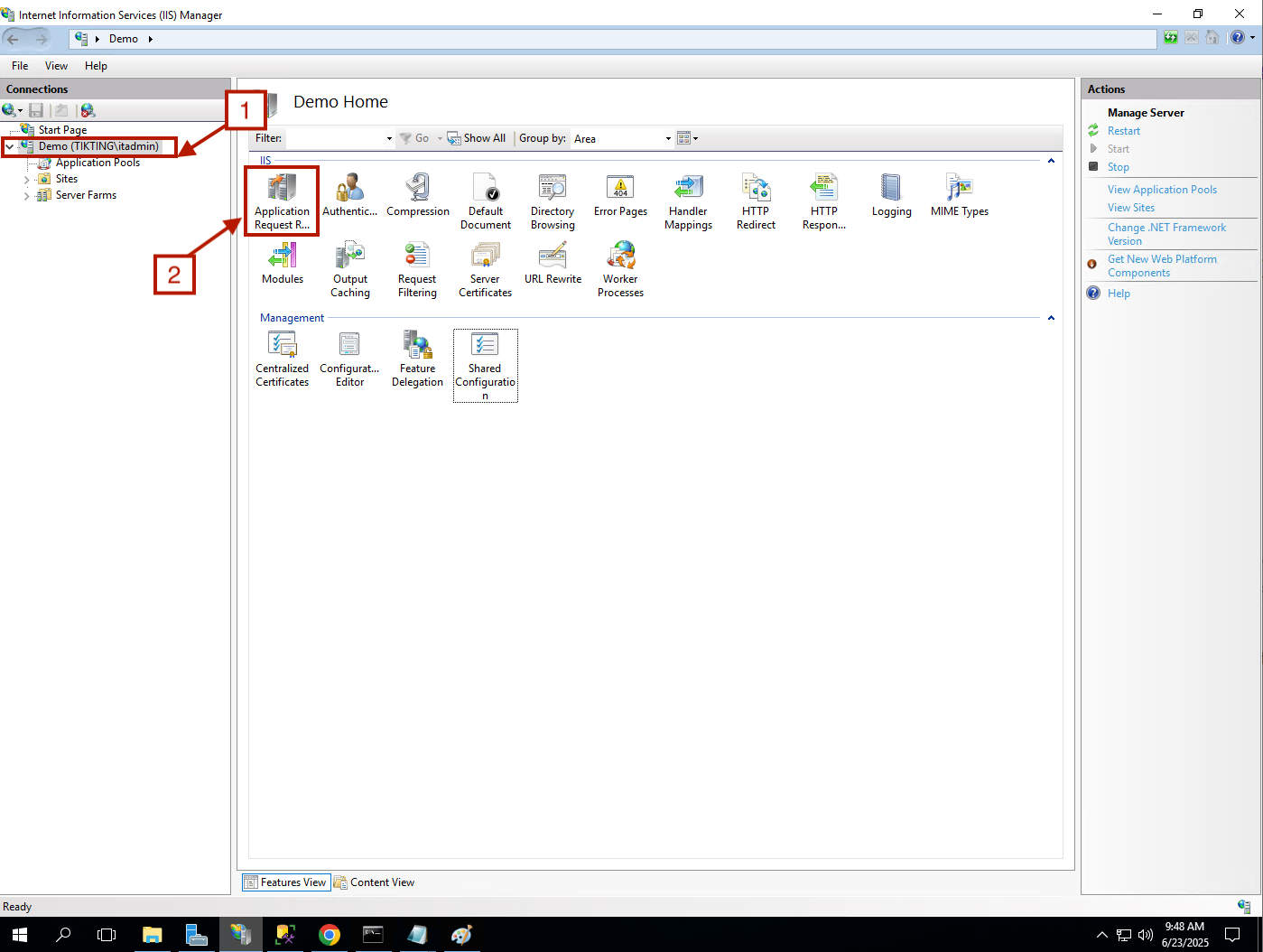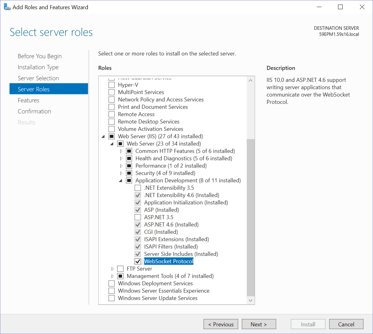 - Install .Net Framework 3.5 and 4.6 from Server Manager > Roles and Features.